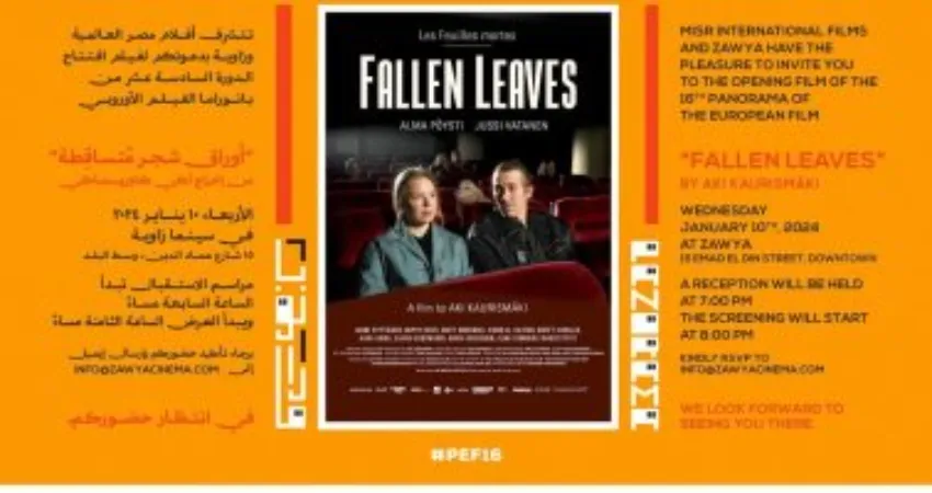 يفتتح مهرجان بانوراما الفيلم الأوروبي الذي تقام دورته السادسة عشرة في الفترة من 11 حتى الـ20 يناير المقبل في سينما زاوية فعالياته بفيلم "أوراق شجر متساقطة" للمخرج " آكي كاويسماكي" الذي يوجد قسم خاص بهذه الدورة للاحتفاء بأعماله وتضم البانوراما هذا العام أكثر من خمس وأربعين فيلم بين روائي ووثائقي وعروض استيعادية وبجانب برنامج الأفلام، يضم البرنامج الموازي نقاشات وندوات ....
