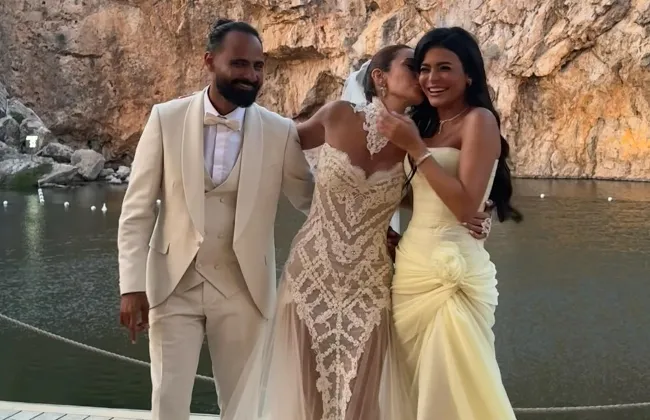 أسماء جلال تنشر صورا جديدة لها من حفل زفاف أمينة خليل باليونان