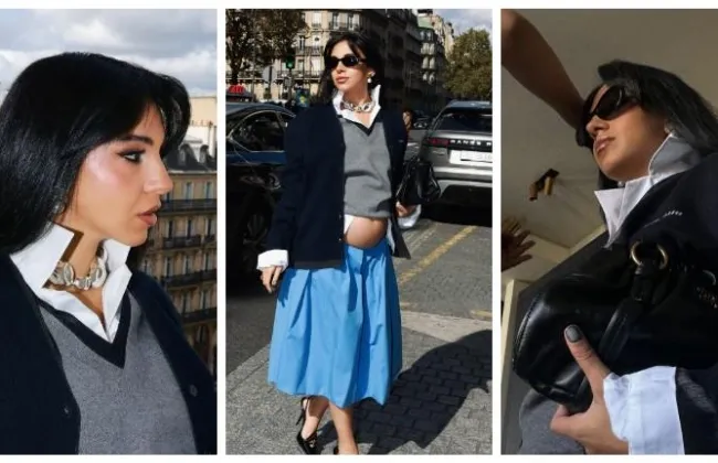 أبرزت الفنانة سلمى أبو ضيف حملها أثناء سيرها في شوارع باريس، حيث خضعت لجلسة تصوير جديدة