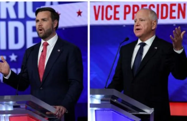 بدأت المناظرة بين "تيم والز" حاكم ولاية مينيسوتا ونائب مرشحة الحزب الديمقراطى كامالا هاريس