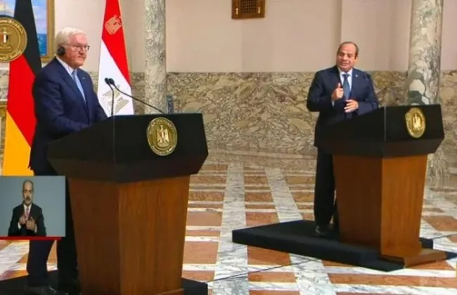أضاف الرئيس السيسي خلال مؤتمر صحفى مشترك بقصر الاتحادية: زيارة الرئيس الألماني