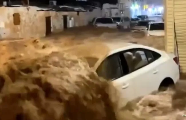 سيول جارفة تجتاح المدينة المنورة وتجرف عددا من السيارات