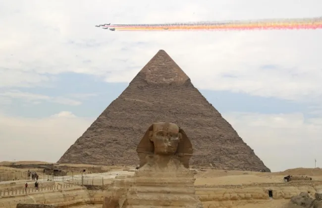 استعراض جوى لفريق صينى فوق أهرامات الجيزة قبل معرض العلمين
