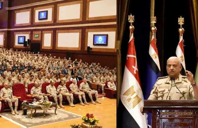 التقى الفريق أول عبد المجيد صقر القائد العام للقوات المسلحة وزير الدفاع والإنتاج الحربى بعدد من رجال الجيش الثالث الميدانى وقوات شرق القناة لمكافحة الإرهاب