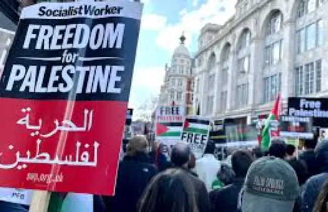 متظاهرون يغلقون مداخل وزارة الخارجية البريطانية احتجاجا على موقفها من غزة