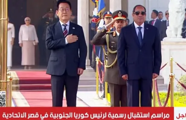 استقبل السيد الرئيس عبد الفتاح السيسي والسيدة انتصار السيسي قرينة رئيس الجمهورية، اليوم، رئيس جمهورية كوريا الجنوبية لي جاي ميونغ والسيدة قرينته، وذلك لبحث مختلف جوانب العلاقات الثنائية بين البلدين.