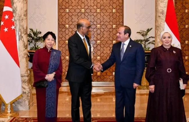 رئيس سنغافورة: أشكر الرئيس السيسى وقرينته على حسن استقبالى وزوجتى بمصر