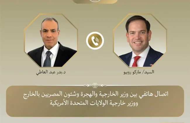 جرى اتصال هاتفى بين د.بدر عبد العاطى، وزير الخارجية والهجرة مع "ماركو روبيو" وزير خارجية الولايات المتحدة الأمريكية