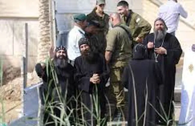 على الجانب الآخر من النهر (من ناحية دولة الأردن) الآباء الكهنة والشمامسة والخدام والشعب القبطي بالأردن