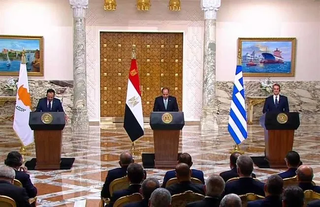 قال الرئيس السيسى خلال مؤتمر صحفى مشترك مع رئيس وزراء اليونان ورئيس جمهورية قبرص، بقصر الاتحادية