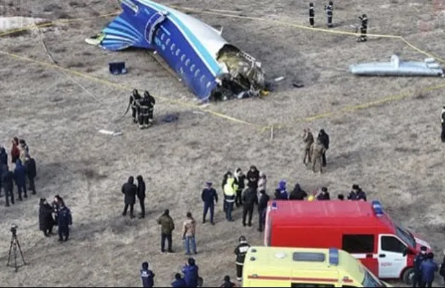 إثر تحطم طائرة ركاب تابعة لشركة طيران أذربيجان والتى كانت متجهة من العاصمة الأذربيجانية باكو