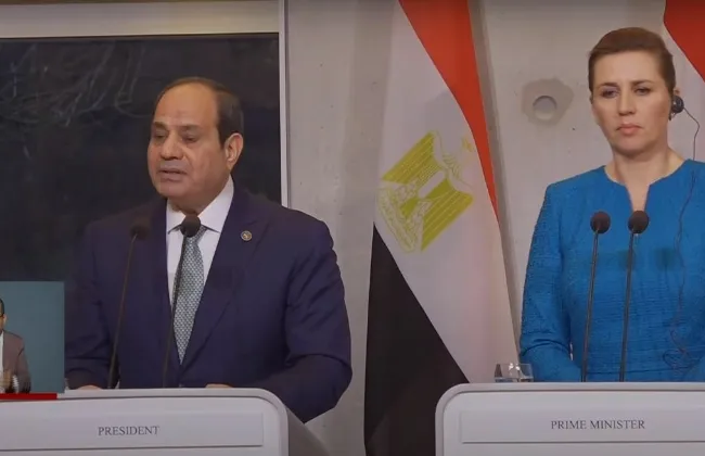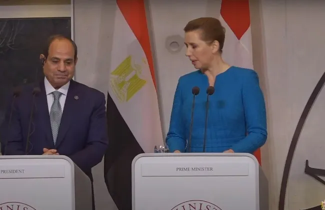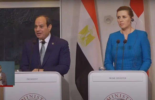 قال الرئيس عبد الفتاح السيسي، خلال مؤتمر صحفي مشترك مع رئيسة وزراء الدنمارك: أود فى البداية