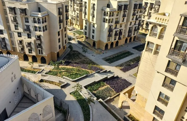 وتم إنشاء محور ترفيهى على مساحة 16 فدانا، و70 عمارة سكنية ذات طراز معمارى بارتفاعات مختلفة