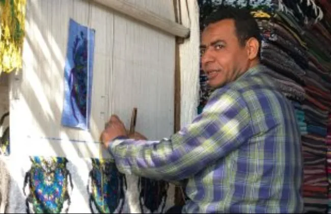 مبدعًا لوحة فنية فرعونية مصنوعة من القطن، معتمدًا في تصنيعها على خبرة ومهارة اكتسبهما في قرية سقارة، تلك القرية التي تشتهر بصناعة السجاد اليدوي عالي ....