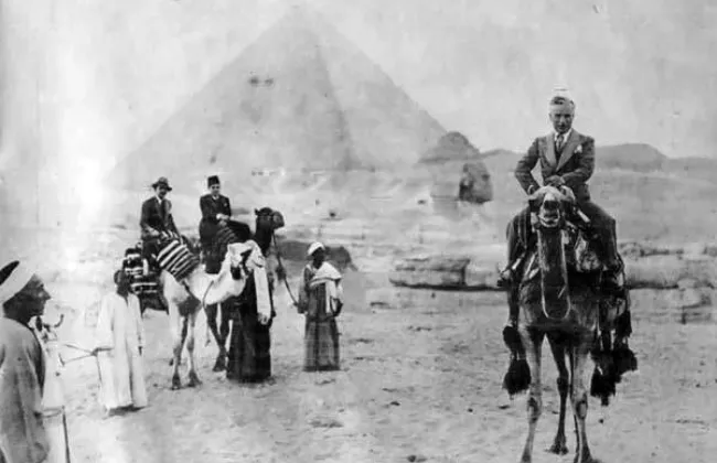 اعتلى الممثل العالمى وأسطورة الكوميديا شارل شابلن، الجَمل، ليقوم بجولة بين الأهرامات الثلاثة وتمثال أبو الهول