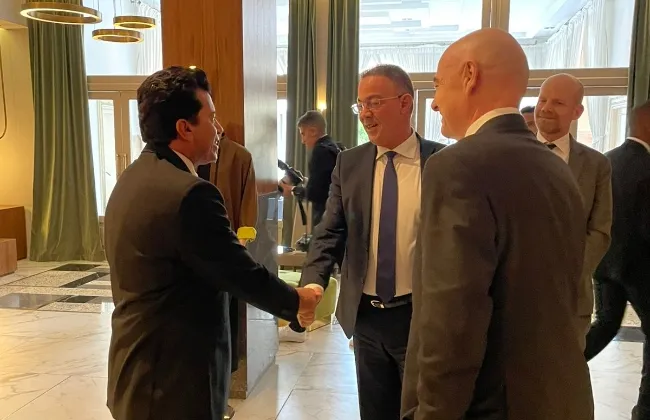وكان فى استقباله فوزى لقجع رئيس الجامعة الملكية المغربية لكرة القدم