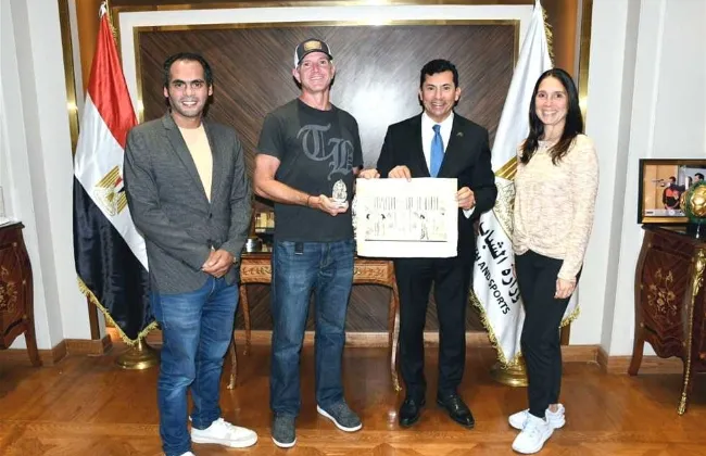 وزير الشباب والرياضة يلتقي البطل الأمريكي شون سورانر