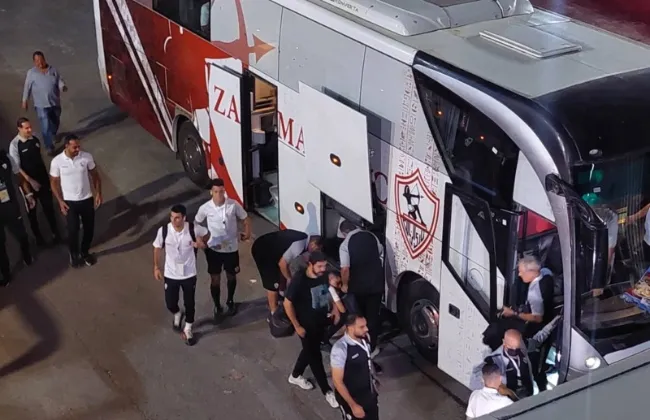 حافلة الزمالك تتحرك لملعب المملكة أرينا لمواجهة الأهلى فى السوبر الأفريقى