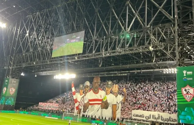 ورفعت جماهير الزمالك لافتة مكتوب عليها: حناجرنا أبدًا لن تصمت.. مجدنا محال لن يسقط