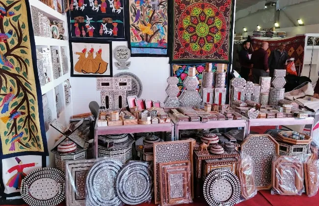 وتضمنت المنتجات (خوص، جلود، زجاج سيناوي، اكسسوارات)، ومنتجات أخرى متنوعه من المحافظات المختلفة