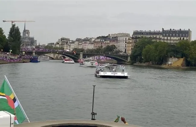 وصل مركب البعثة المصرية إلى منطقة حفل أولمبياد باريس 2024 المقام حاليا فى العاصمة الفرنسية، وسط هطول الأمطار بشكل مفاجئ