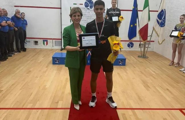 اللاعب المصرى على عزت يحقق المركز الأول ويحصد الميدالية الذهبية لبطولة إيطاليا المفتوحة لناشئ الاسكواش 2024