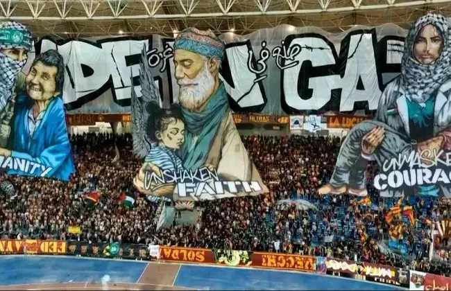 حرصت جماهير الترجي التونسي على رفع "تيفو" يدعم القضية الفلسطينية قبل مباراة فريقها أمام الأهلي والمباراة التي تجمعهما مساء السبت على استاد حمادي العقربي برادس في ذهاب نهائي دوري أبطال أفريقيا، وكتب عليه عبارة ، صنع في غزة ....