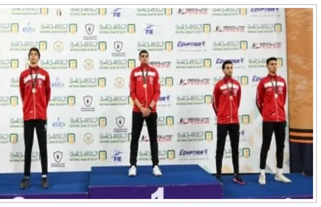 لاعبو منتخب مصر لسيف المبارزة للناشئين تحت 20 سنة ميداليات منافسات الفردي ببطولة أفريقيا للسلاح للناشئين والشباب و -15 سنة المقامة خلال الفترة ما بين 1 وحتى 7 مارس الجاري داخل مجمع الصالات المغطاة باستاد القاهرة الدولي.