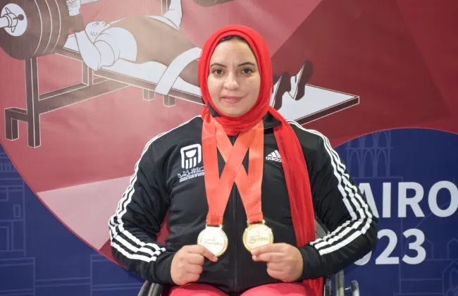 بطلة اليوم فى خارج الملعب هى ريحاب رضوان لاعبة رفع الاثقال البارالمبي