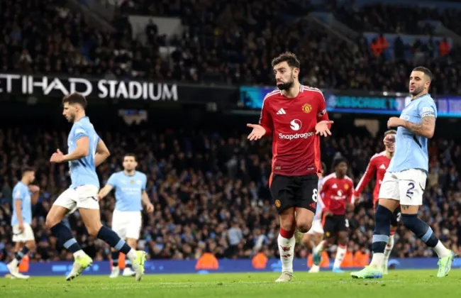 مان سيتي ضد مان يونايتد.. برونو فرنانديز يحرز هدف التعادل فى الدقيقة 88