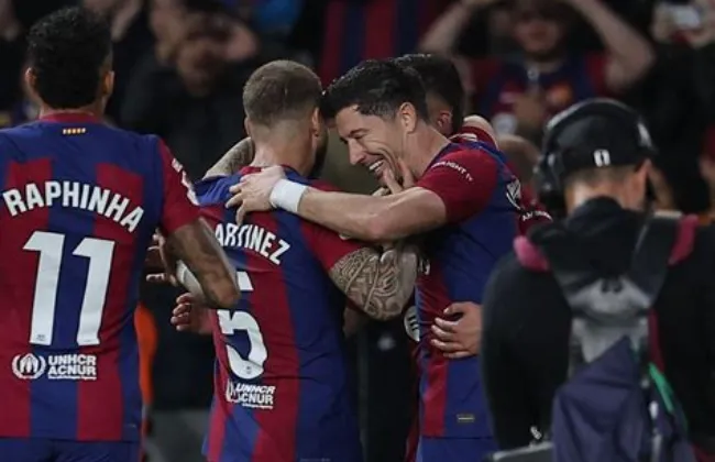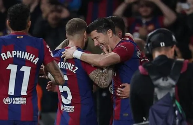 ونجح البرازيلي رافينيا في تعديل النتيجة لصالح برشلونة امام لاس بالماس