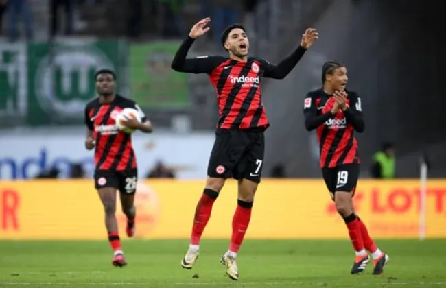 أحرز الدولي المصري عمر مرموش، لاعب آينتراخت فرانكفورت، الهدف الثالث لصالح فريقه فى شباك
