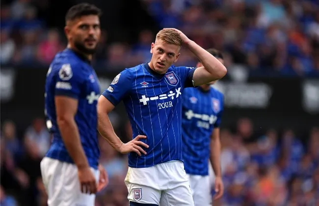 تأخر فريق إيبسويتش تاون، الذي يلعب بين صفوف النجم المصري سام مرسي أمام نظيره وست هام يونايتد، 1-2