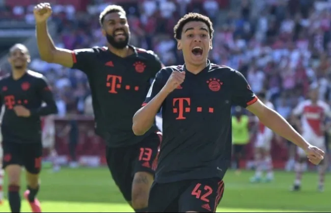 سجل جمال موسيالا هدف التقدم لصالح بايرن ميونخ ضد فولفسبورج بالدقيقة 19 من اللقاء