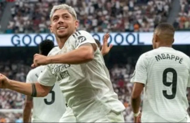 أحرز فيديريكو فالفيردي، لاعب فريق ريال مدريد الإسبانى، الهدف الأول فى شباك نظيره بلد الوليد، الصاعد حديثا