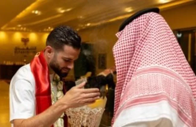ونشر القادسية، عبر حسابه الرسمي على منصة "إكس"، فيديو وصور من وصول لاعبه الإسباني، الذي تم استقباله بالورد والقهوة العربية