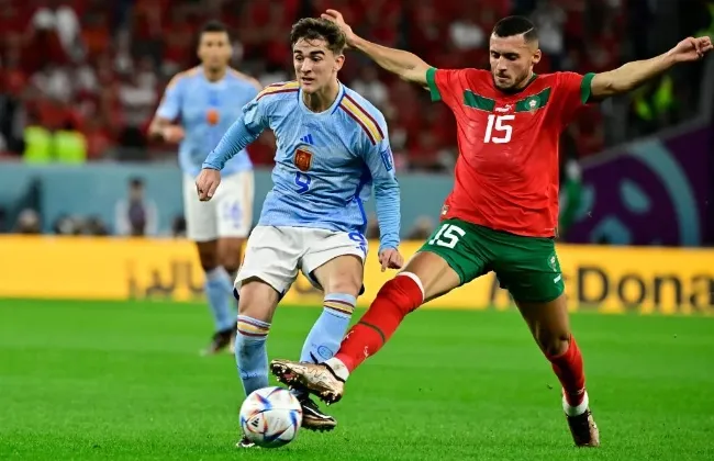 انتهى الشوط الأول من مباراة المغرب ضد إسبانيا بتقدم أسود الأطلس بهدف نظيف