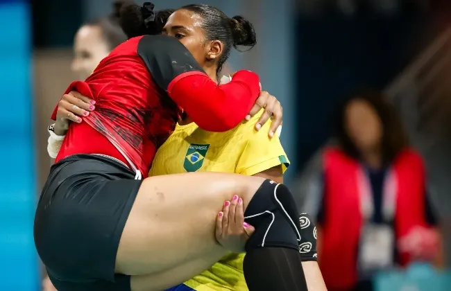 في لفتة إنسانية طيبة، حملت لاعبة منتخب البرازيل في منافسات كرة اليد للسيدات زميلتها في منتخب أنجولا بأولمبياد باريس