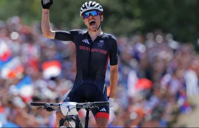 تغلب البريطاني توم بيدكوك على ثقب بالإطار ليحافظ على ذهبية سباق اختراق الضاحية بالدراجات الجبلية في أولمبياد باريس 2024