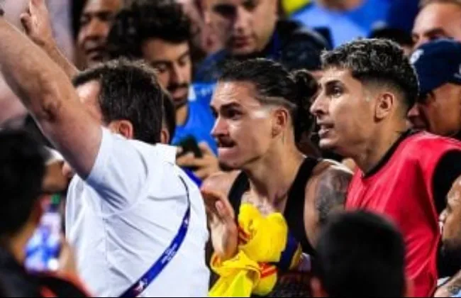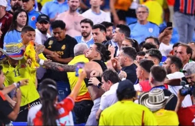 وحدثت مشادة عنيفة بالأيدي داخل ملعب "بنك أوف أرينا"، بين لاعبي أوروجواي وعلى رأسهم داروين نونيز رونالد أراوخو وخوسيه ماريا خيمينيز وجماهير منتخب كولومبيا