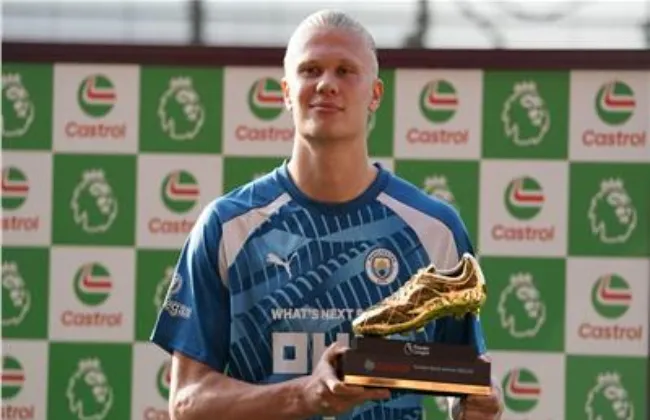 حصد النجم النرويجي إيرلينج هالاند، مهاجم مانشستر سيتي، جائزة الحذاء الذهبي كهداف للدوري الإنجليزي الممتاز، للمرة الثانية في مسيرته، بعد أن سجل 27 هدفا في الموسم المنقضي