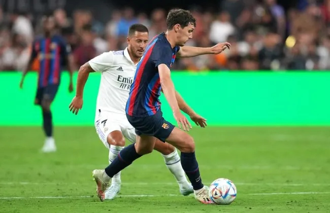 أنهى فريق برشلونة أحداث الشوط الأول من مواجهة رايو فاليكانو متقدمًا بنتيجة 1-0، خلال المباراة التي تجمع الفريقين حاليًا بملعب لويس كومبانيس الأولمبي، فى إطار مباريات الجولة السابعة والثلاثين من منافسات الدوري الإسبانى للموسم الحالي 2023-2024
