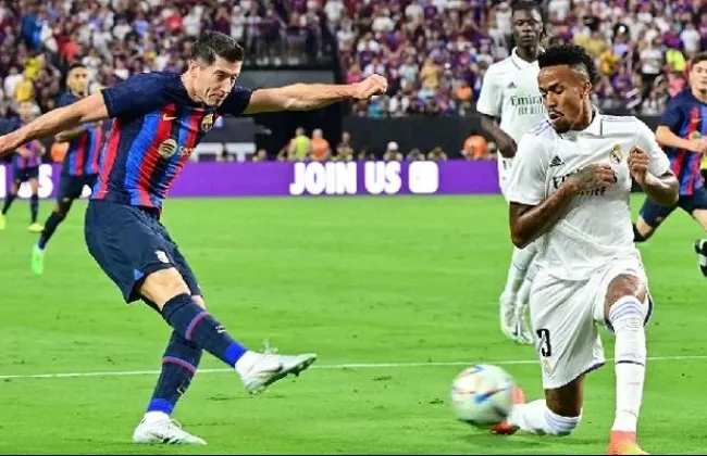 برشلونة يتقدم بهدف ليفاندوفسكي على رايو فاليكانو في الشوط الأول