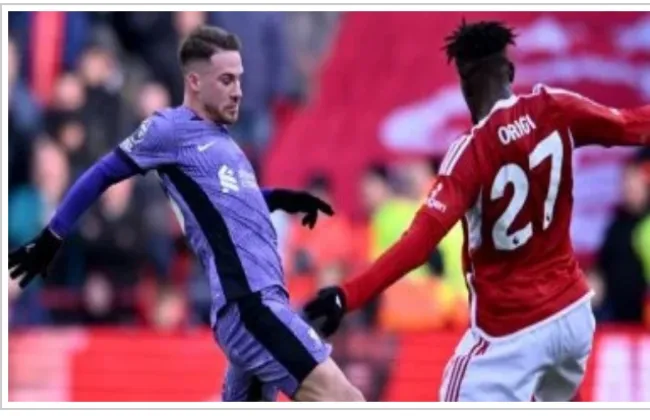 فريق ليفربول حقق، الذي يلعب بين صفوفه النجم المصري محمد صلاح، فوزا مثيرا على نوتينجهام فورست بنتيجة 1-0، على ملعب سيتي جراوند، ضمن مباريات الجولة الـ 27 من الدوري الإنجليزي الممتاز موسم 2023-2024.