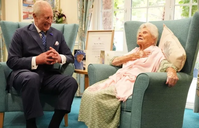الملك تشارلز يزور أكبر معمرة فى العالم بعمر 116 عاما ويجمعهما مزاح وحوار مرح
