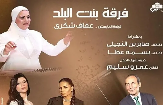 ضمن الفعاليات المتنوعة للثقافة المصرية تنظم دار الأوبرا برئاسة الدكتورة لمياء زايد حفلا لفرقة بنت البلد بقيادة المايسترو عفاف شكرى ومشاركة الفنانتين صابرين النجيلى وبسمة عطا