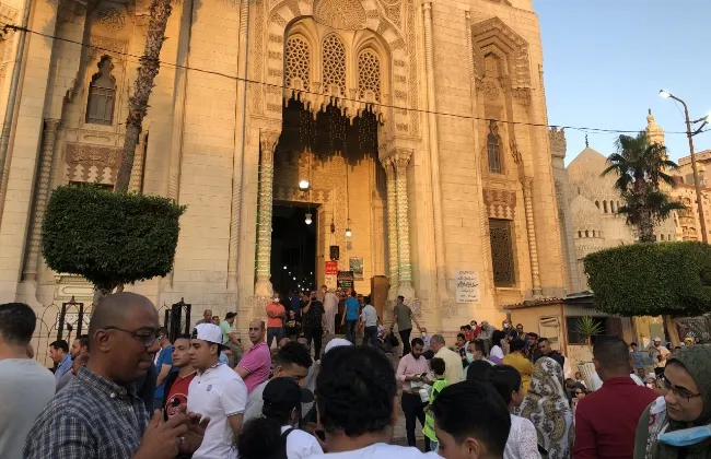 توافد المصلين على ساحة مسجد المرسى أبو العباس بالإسكندرية لصلاة العيد..