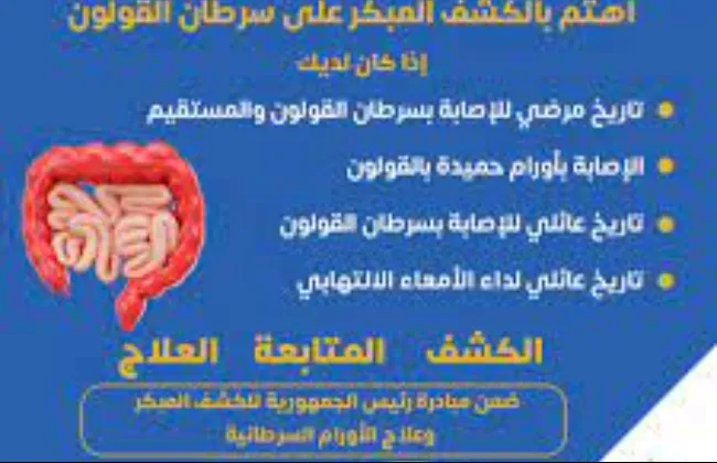 قالت وزارة الصحة والسكان أنه يجب الاهتمام بالكشف المبكر على سرطان القولون فى هذة الحالات التالية