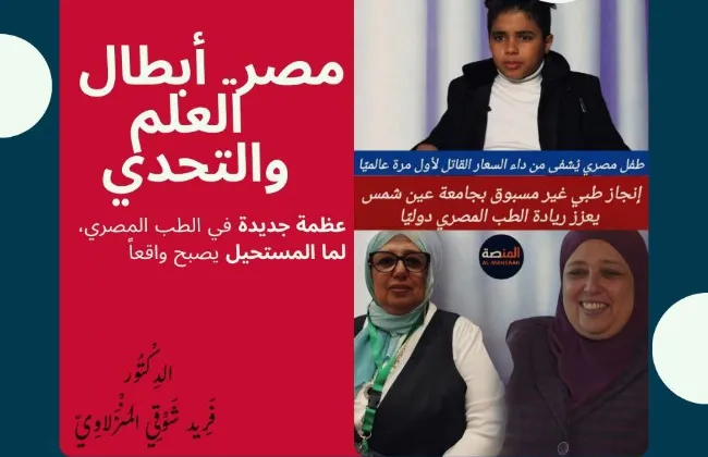 وجه الدكتور فريد شوقي المنزلاوي، أحد القيادات المجتمعية البارزة، رسالة احتفاء بالغة القوة في بيان رسمي له، إشادة بالإنجاز الطبي غير المسبوق الذي حققه فريق طبي مصري في علاج طفل مصاب بمرض السعار، الذي يعتبره الطب العالمي "غير قابل للعلاج".