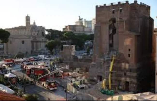 توري دي كونتي التاريخي الواقع بالقرب من المنتدى الروماني والكولوسيوم، ما أسفر عن مصرع عامل روماني